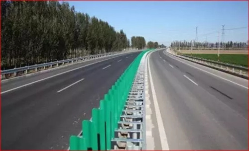 工程中央分隔帶安裝新型防眩網,顏色亮麗、美觀大方,既隔離上下行車道,又防護夜間行駛車輛燈光,達到防眩和隔離的目的,為旅游大道增添了一道亮麗的風景線。