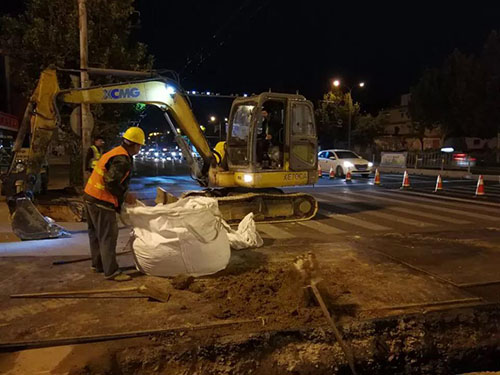 同時(shí)為確保原有管線安全,開(kāi)挖過(guò)程全部采用人工作業(yè),渣土裝袋不落地的綠色施工方法,恢復(fù)通行前對(duì)原有管線再采取加固措施,確保管道安全和通行安全的萬(wàn)無(wú)一失。