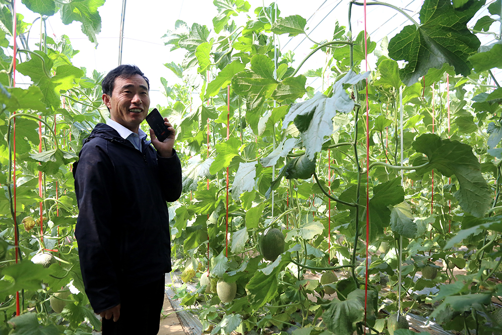 在哈密瓜種植棚里,陳德國已經(jīng)電話安排好了本周六的采摘活動?,F(xiàn)在正值采摘黃金季,前來植樹踏青、大棚蔬菜瓜果采摘、園區(qū)觀光的團隊絡(luò)繹不絕。