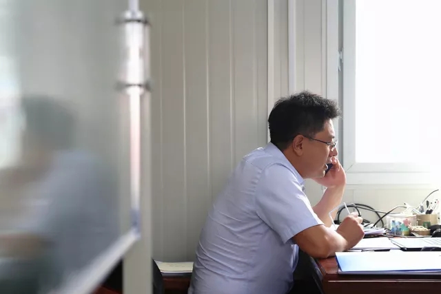 8:50濟(jì)南齊魯黃河大橋建設(shè)指揮部,我們?nèi)缂s見到了趙世超。一進(jìn)入項目部“板房”辦公室,他就立馬打電話安排起了今天的工作,這種工作狀態(tài),早已是他熟悉的工作節(jié)奏。從2001年畢業(yè)開始,趙世超就一直住板房、跟工程,有著17年項目一線工作經(jīng)驗(yàn)的他,是建設(shè)一線一名結(jié)結(jié)實(shí)實(shí)的“老將”。