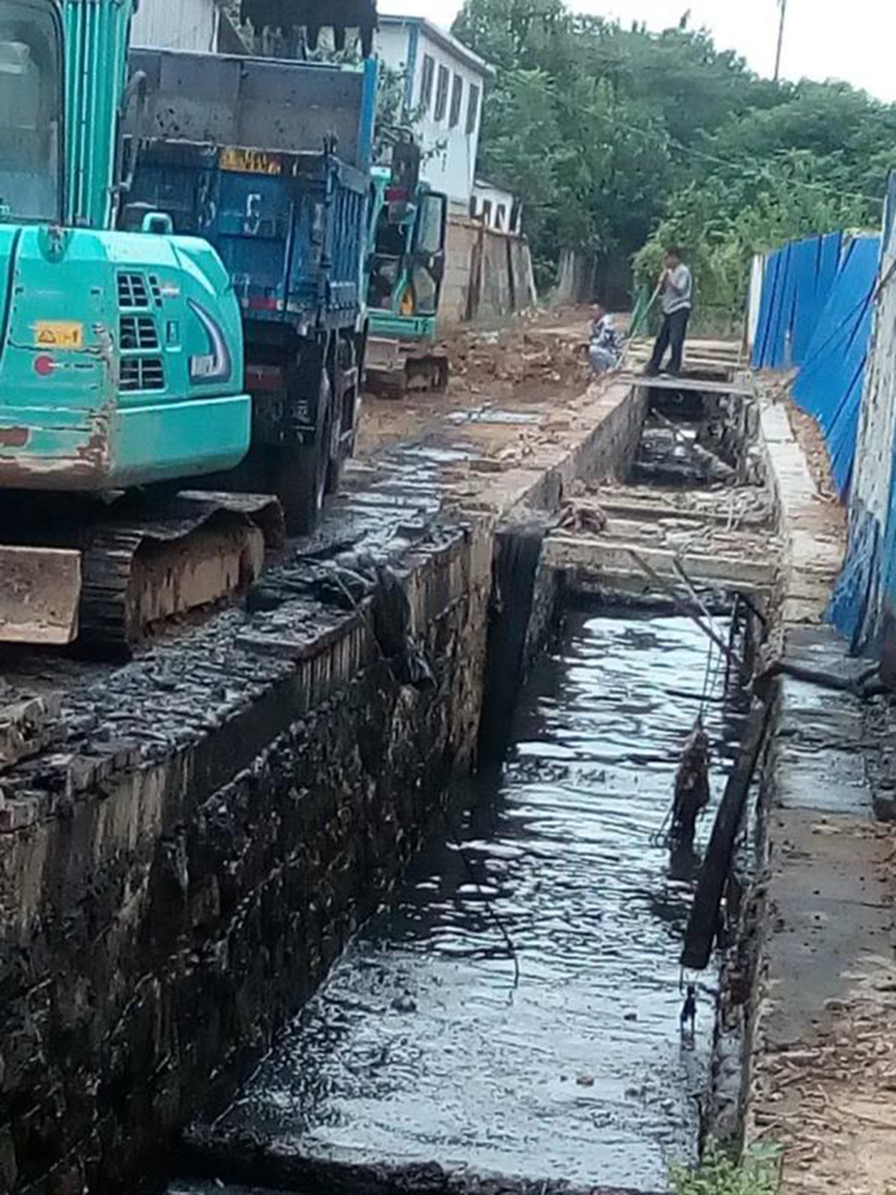 濟空四站邊溝是由拖機路自東向西的一條雨污混流的溝渠,主要污水來源為附近居民的生活污水,全長約1.56公里,斷面為1.6×1.8米,大部分是路面下的暗溝,約600米為明溝,明溝內垃圾、淤泥沉積,黑臭水不斷,黑臭等級為重度黑臭水。