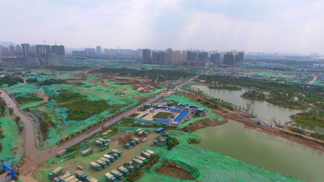項目目前開工面積約160萬平方米,已開挖成型的湖區面積約30萬平方米,除臨時道路外,裸土覆蓋面積約100萬平米。為確保渣土車輛不帶泥出場,項目對場內臨時道路進行混凝土硬化達8公里,普通硬化道路10余公里。項目總計投入灑水車輛15臺,環衛清掃車3臺,組建了120人的保潔隊伍,對場內硬化便道和社會道路高頻次灑水、沖洗、保潔,確保場內道路無泥漿,場外道路濕潤不起塵。投入移動霧炮機100余臺,保證各土方作業點均能落實濕法作業要求。
