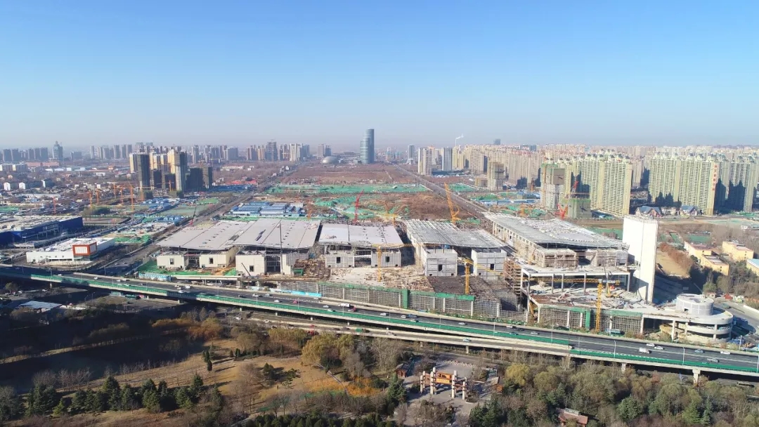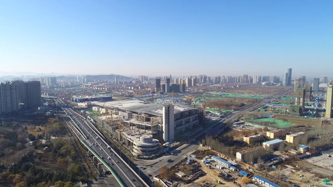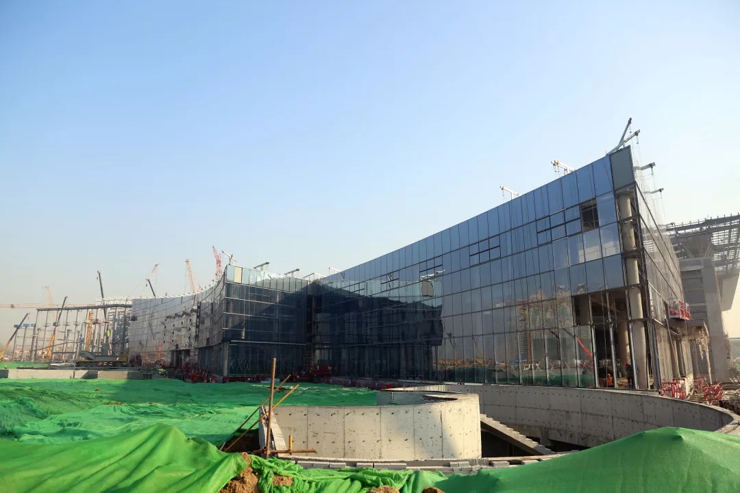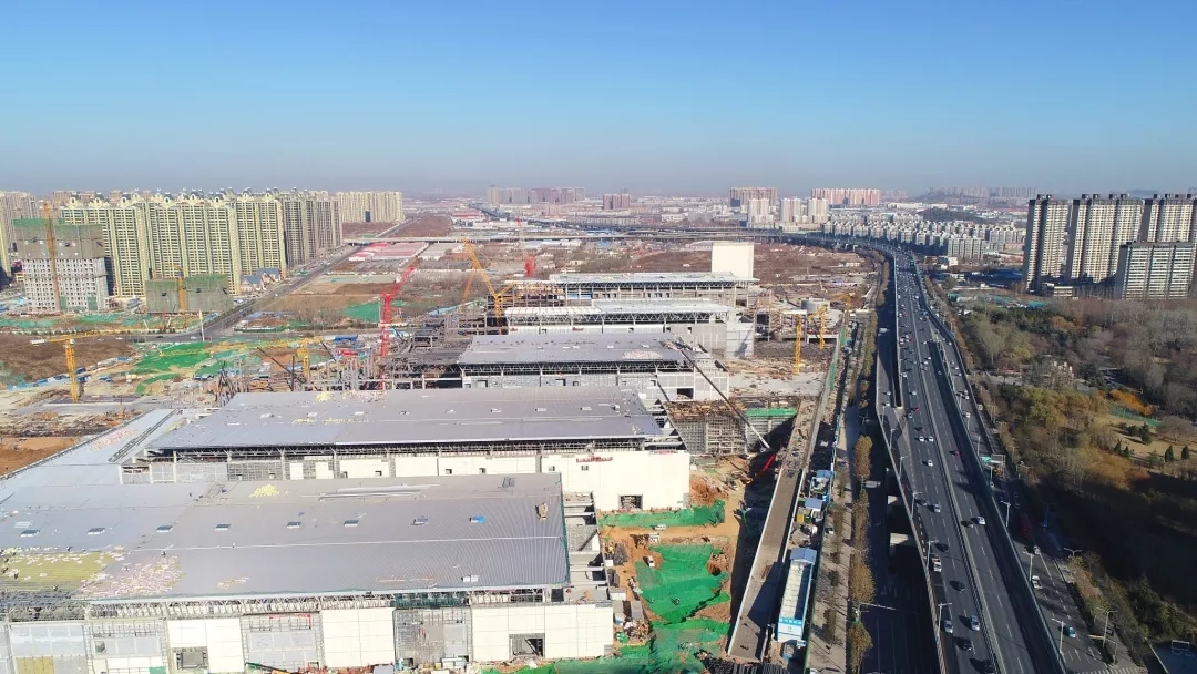 濟南西部會展中心:共享大廳已裝3000余塊玻璃,卸貨平臺顯雛形