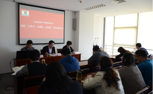 2018年4月9日,濟南西城資產管理有限公司組織召開“大學習、大調研、大改進”工作動員大會。會議由資產公司副總經理楊坤同志主持并宣讀《濟南西城資產管理有限公司開展“大學習、大調研、大改進”工作實施方案》,副總經理陳向勤同志宣讀《濟南城市建設集團創建全國文明單位工作方案》,董事長兼總經理顏丙根同志就以上工作作動員講話。