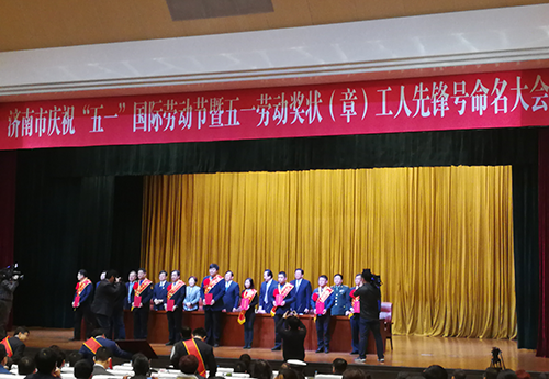 2018年4月23日,濟(jì)南市總工會(huì)在龍奧大廈召開濟(jì)南市慶祝“五一”國際勞動(dòng)節(jié)暨五一勞動(dòng)獎(jiǎng)狀(章)工人先鋒號(hào)命名大會(huì)。大會(huì)表彰了一批工作突出、貢獻(xiàn)卓著的先進(jìn)集體和先進(jìn)個(gè)人。