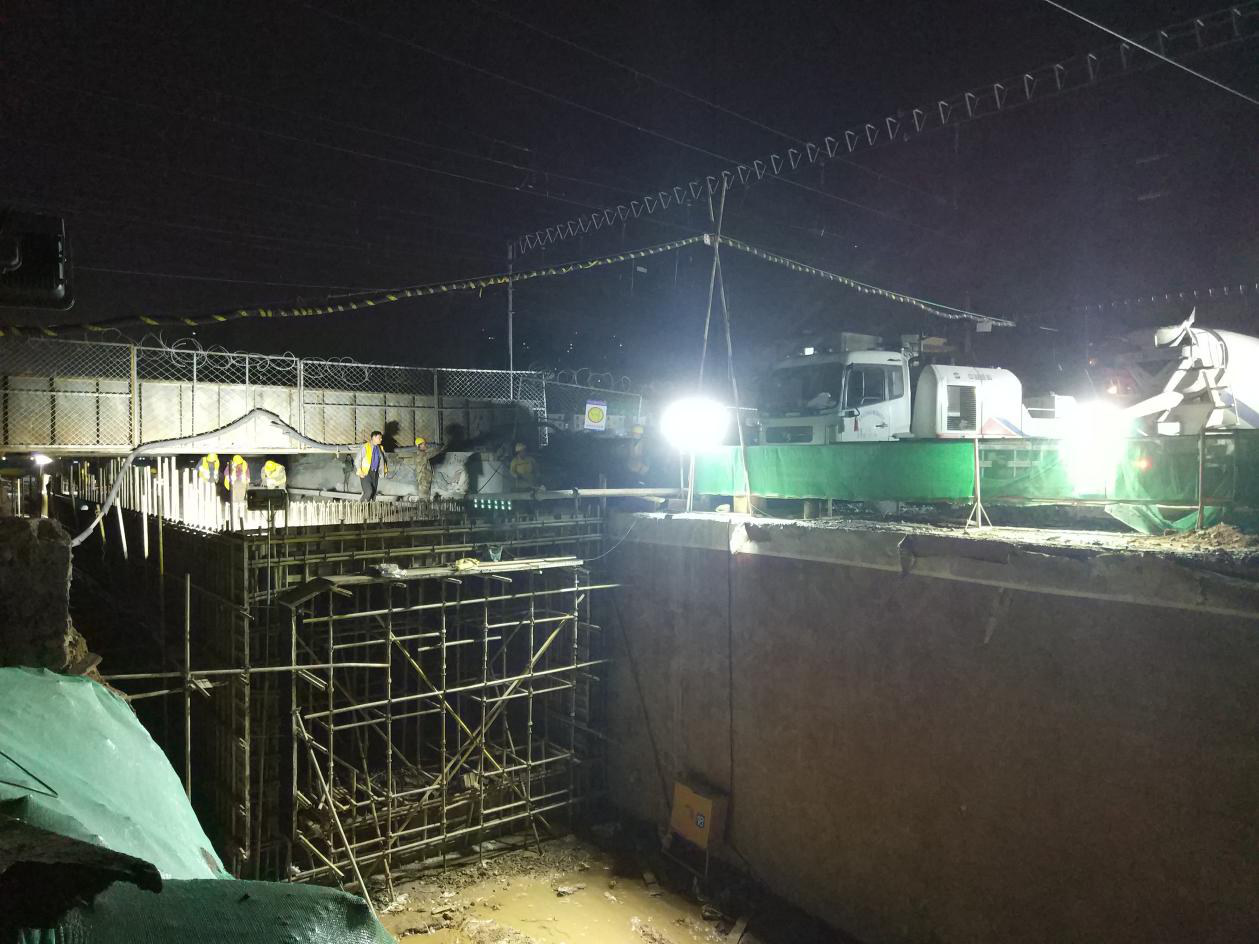 新建鳳凰路穿越膠濟鐵路立交橋工程站場改造涉及工務、電務、通信、電力牽引供電專業立體交叉作業,各專業需同步作業,協調工作量大,交叉作業安全壓力大。為確保六月份信號大要點順利實施,五一期間,工程建設者們不分晝夜、加班加點,協調鐵路部門設備管理單位全程監控配合;加強防護員與駐站聯絡員聯系頻率;加強安全文明管理工作。期間組織作業人員100余人次,圓滿的完成了計劃任務。