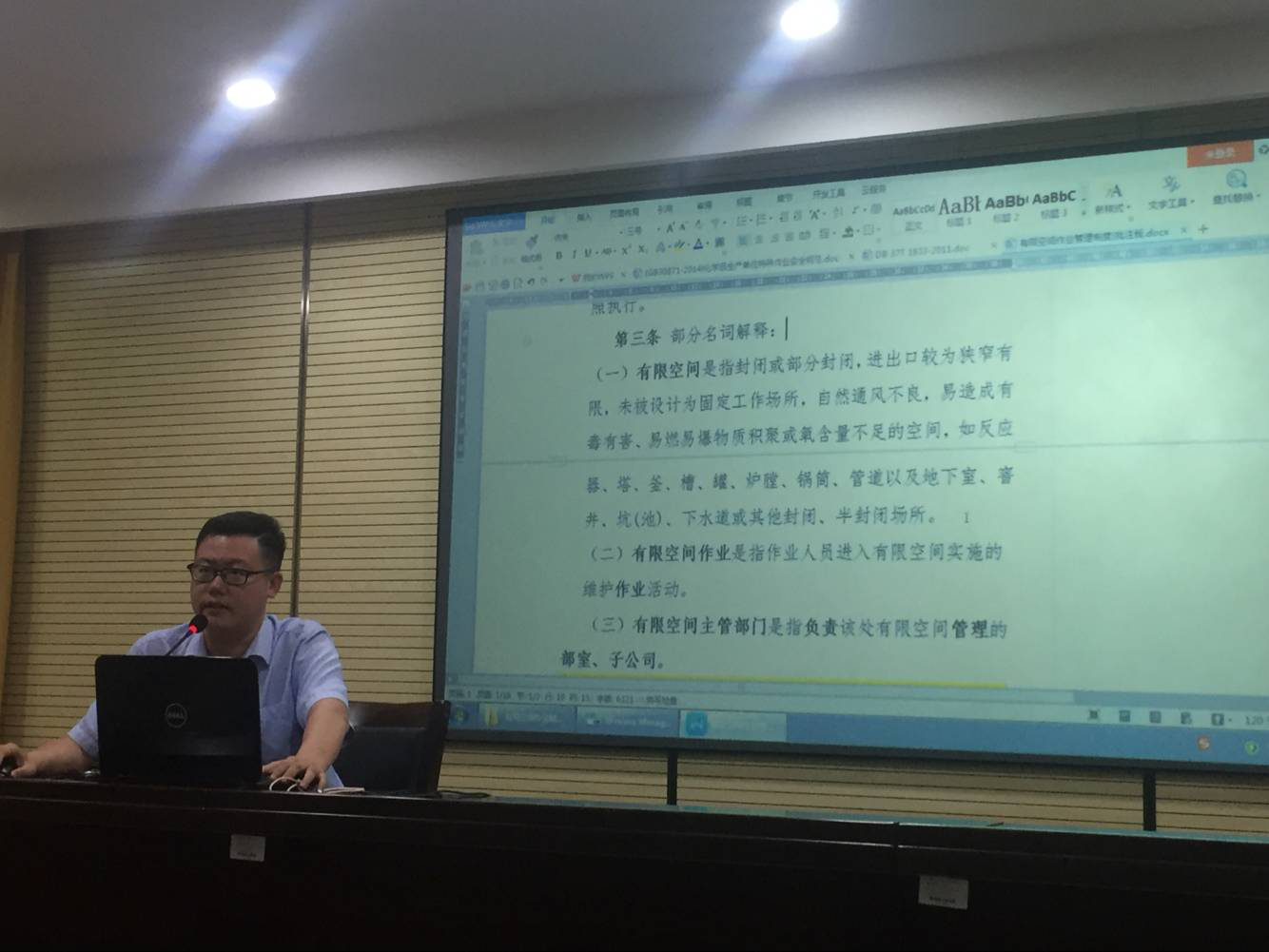為更好的推進落實《有限空間作業管理制度》,增強管理人員和作業人員對制度和相關法律法規的認識,加強有限空間作業審批及管控力度,降低安全事故發生概率,安全質量部和企管人力部在6月6日下午共同組織了公司《有限空間作業管理制度》及有限空間作業相關法律規范的培訓活動。