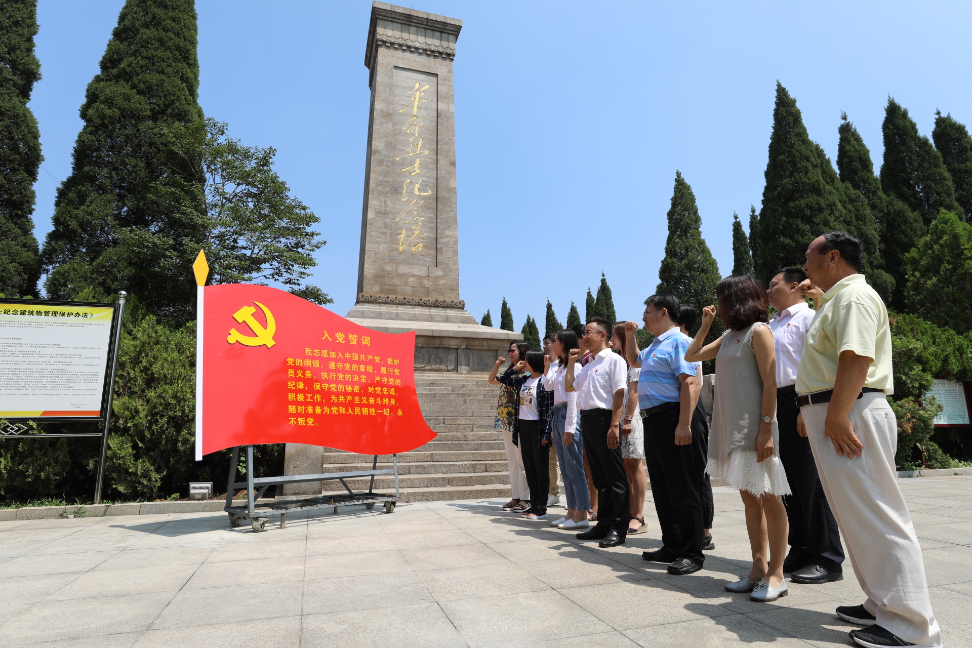 在萊蕪戰役史紀念館,全體黨員干部認真聆聽講解,仔細觀看歷史圖片、資料,重溫革命歷史,詳細了解萊蕪戰役的榮耀歷程,深刻緬懷了革命戰士不怕犧牲、浴血奮戰,聯合人民舍小家、顧大家、全力支前,保證萊蕪戰役取得勝利的革命精神。在革命烈士紀念碑下,大家鄭重舉起右手,重溫入黨誓詞,重新感受入黨初心。