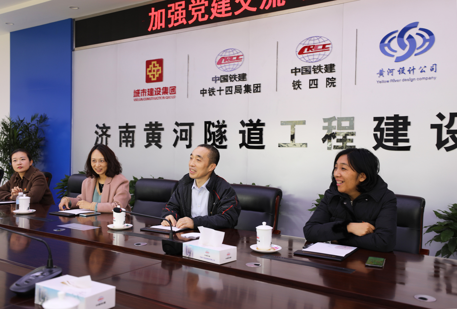 全體人員隨后又來到濟南黃河隧道項目部。支部與城隧公司黨支部書記、執行董事張健及項目工作人員進行了座談,雙方著重對支部目前的工作情況以及今后交流共建形式進行了交流探討。張健部長介紹了穿黃隧道工程項目的進展情況,范總對集團目前投融資工作也進行簡要介紹,投融資部的全體人員也參與了交流并表示,在今后的工作中要繼續積極地配合,做好資金支持與服務工作。