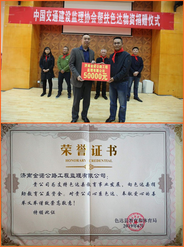 積極參與脫貧攻堅事業是一個有社會責任感的企業服務社會、回報社會的重要體現。不忘初心,牢記使命,濟南金諾公路工程監理有限公司作為中國交通監理協會的理事單位,將持之以恒的為貧困地區脫貧攻堅事業貢獻力量,持續關注色達孩子的教育和成長,盡企業的綿薄之力,為社會和諧進步和民族團結和諧貢獻力量。