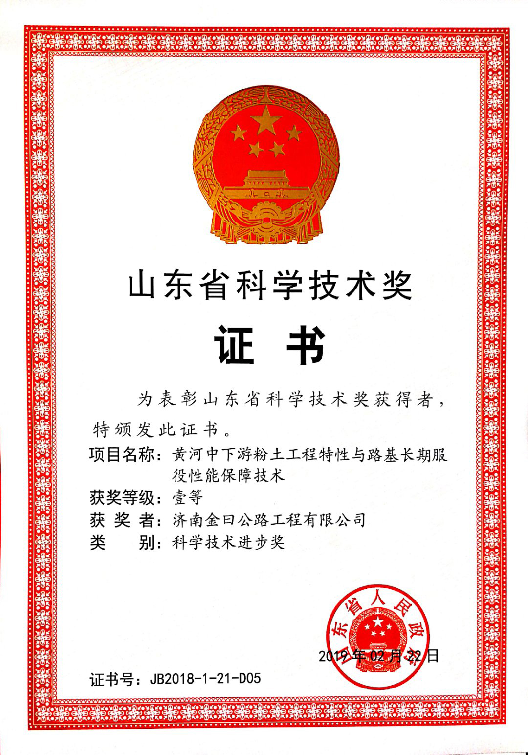 4月4日,山東省科學技術獎勵大會在山東大廈隆重舉行。濟南城市建設集團所屬濟南金曰公路工程有限公司參與研發的《黃河中下游粉土工程特性與路基長期服役性能保障技術》科研成果,榮獲2018年山東省科技進步一等獎。