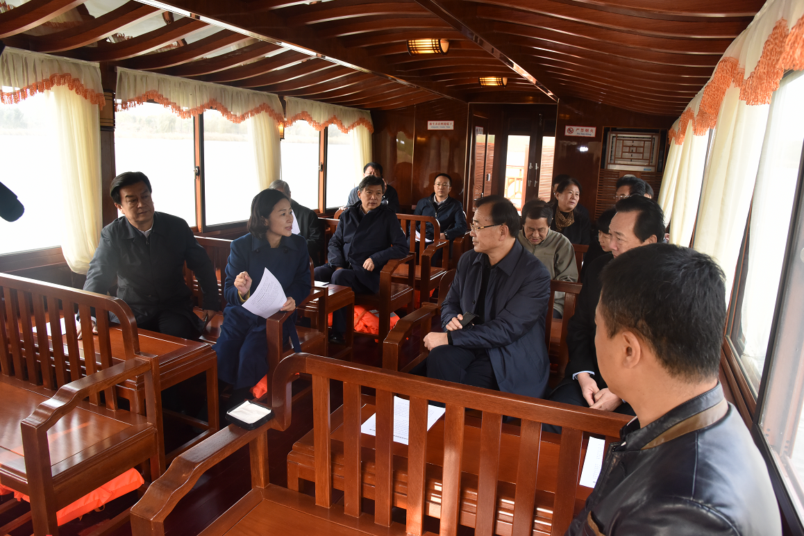 全國人大調研組一行現場察看了濕地主入口、游客服務中心、天鵝湖等,并乘船實地參觀考察了濕地環境與資源保護工作。調研組聽取了山東濟西濕地管理有限公司總經理張衛東對濕地項目的現場匯報,對濕地生態保護提出了建設性意見。