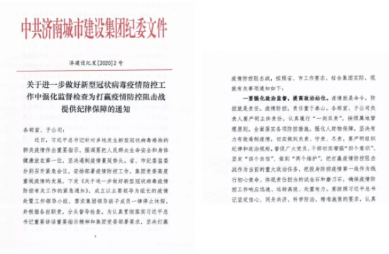 疫情就是命令,防控就是責(zé)任。濟(jì)南城市建設(shè)集團(tuán)把疫情防控作為當(dāng)前最重要的政治任務(wù)來抓,按照中央、省、市委關(guān)于做好新型冠狀病毒肺炎疫情防控的部署和要求,快速響應(yīng),迅速部署,采取有力措施,注重黨委、紀(jì)委兩個責(zé)任的協(xié)同配合,深化一線督導(dǎo)檢查,以最堅決的態(tài)度、最嚴(yán)格的執(zhí)行、最果斷的行動,全力以赴推動疫情防控責(zé)任落實。