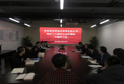 遵照濟南城市建設集團黨委安排部署,為進一步學習宣傳貫徹黨的十九屆四中全會精神,加深對全會精神的了解掌握,提高運用黨的理論成果推動工作的能力,確保園區各項工作落到實處,公司于2019年12月份下旬安排三天下午,在印象濟南園區會議室由總經理宋光華同志主持召開黨的第十九屆四中全會精神的專題學習。