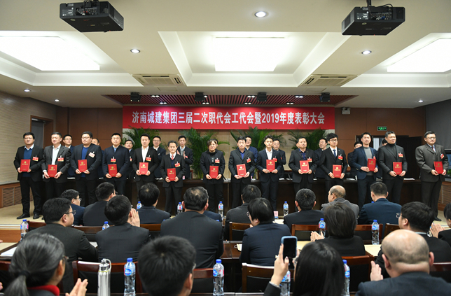 伴隨著歡快的音樂響起,集團召開2019年度總結表彰大會。會上先后對5個先進基層黨組織、12個先進單位、72名優秀共產黨員、238名先進生產(工作)者,以及市場經營、安全生產和工會、共青團等111個先進單位、先進集體和244名先進個人進行了表彰。大會號召,全體干部職工要在集團黨委的正確領導下,堅持以習近平新時代中國特色社會主義思想和黨的十九屆四中全會精神為指引,以先進集體和先進個人為榜樣,弘揚敢闖敢試敢干的“城建鐵軍”精神,只爭朝夕,不負韶華,以更加堅定的步伐,以更加高昂的斗志,向著加快集團高速優質發展目標奮勇前進!