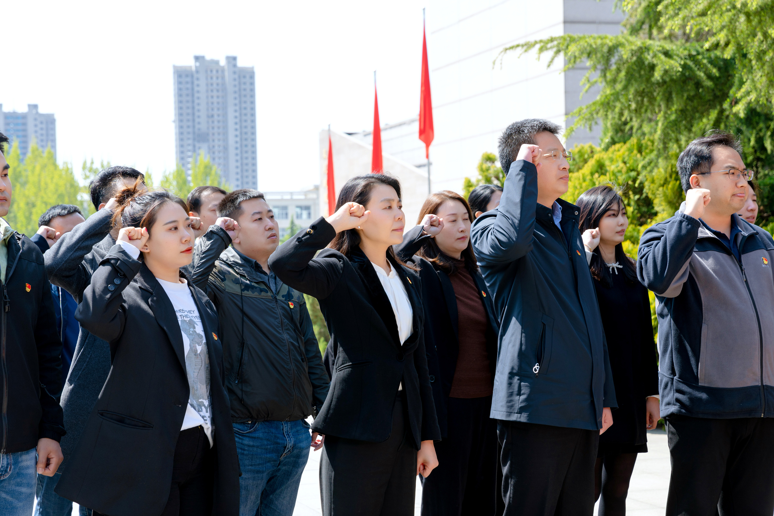 在革命烈士紀念碑旁,全體黨員面對黨旗莊嚴宣誓,重溫入黨誓詞,時刻提醒自己所肩負的神圣使命和責(zé)任,始終牢記黨員身份、對黨忠誠。