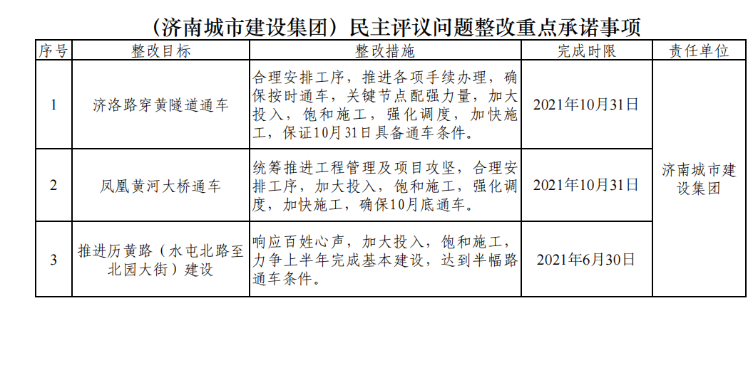 (濟南城市建設集團)民主評議問題整改重點承諾事項