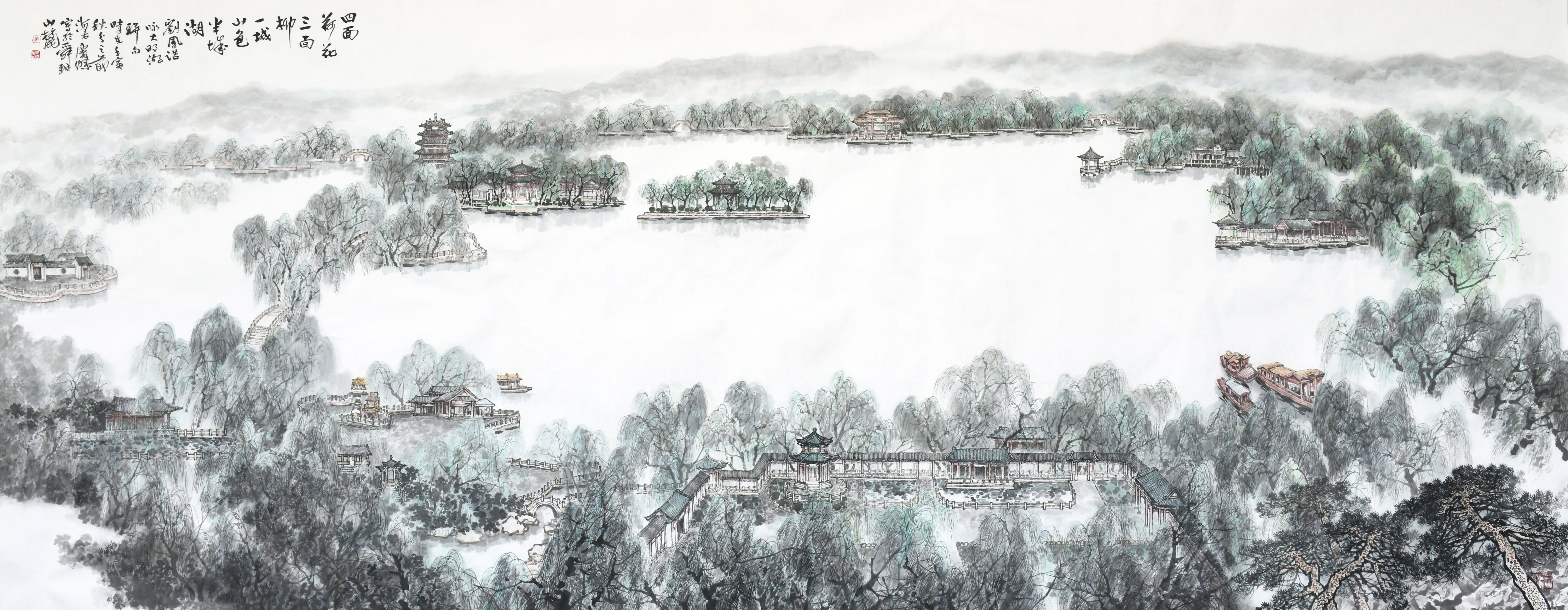 本次展覽特邀52位全國知名藝術家,聚焦新時代重大現實題材、黃河文化、“二安”文化、泉文化、紅色文化及廉潔文化等主題,創作并展出54件作品,形式包括國畫、油畫、漆畫、漫畫等題材。作品以人民為中心,與時代同步伐,集思想性、藝術性和學術性為一體,展現了濟南城市建設集團“城建鐵軍”在推動省會由“大明湖時代”邁向“黃河時代”的歷史進程中履行國企擔當、勇于攻堅克難的新時代風采,展示錦繡泉城十年蝶變、高質量發展的新時代風貌。