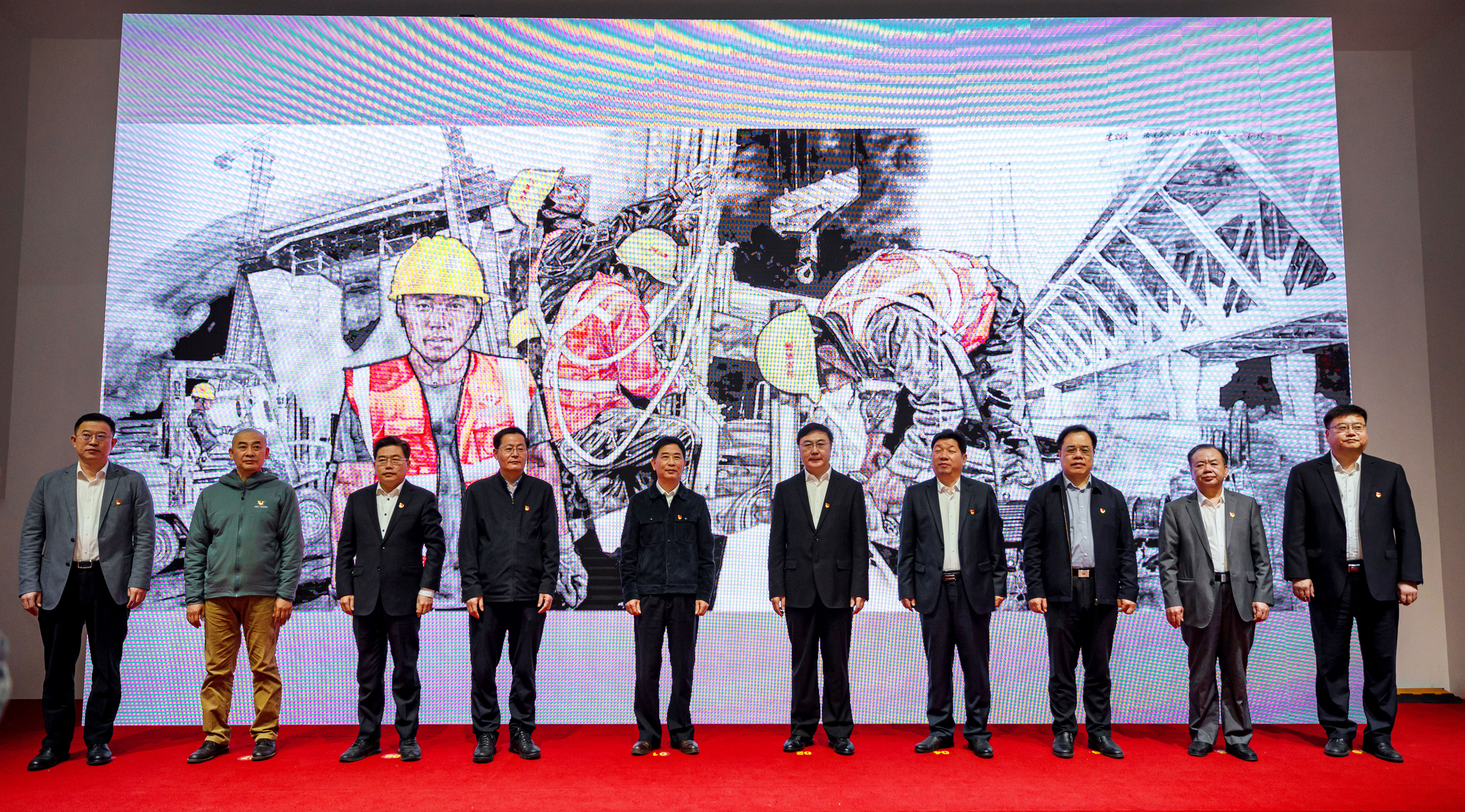 活動中,與會領導共同為《建設者—濟南黃河公路大橋工程紀事》作品揭幕。