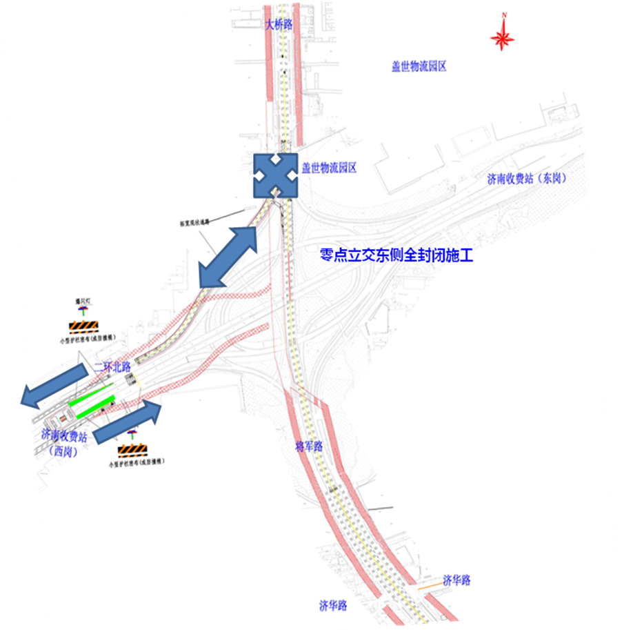 2022年5月6日0時,將封閉G35濟廣高速零點立交橋濟南站東崗收費站,拆除零點立交全部轉向匝道。