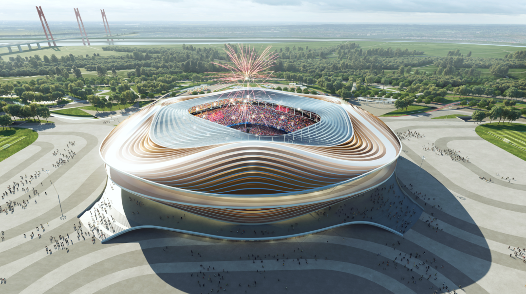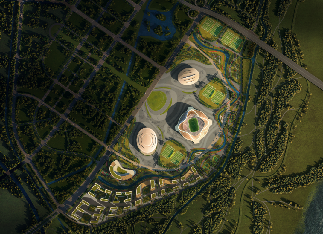 專業足球場項目,總建筑面積約20.1萬平方米,其中地上建筑面積約14.8萬平方米,地下建筑面積約5.3萬平方米。包含6萬余座席,具備承擔世俱杯、亞洲杯等國際足聯A級賽事及國內大型賽事等專業賽事。
