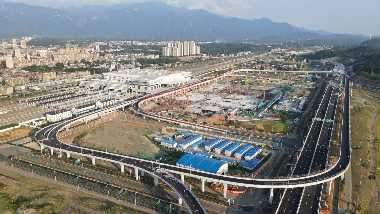 日前,隨著道路橋梁落客平臺(tái)段通車,九江高鐵樞紐附屬工程完成全部剩余橋梁施工任務(wù)。目前,九江高鐵樞紐結(jié)構(gòu)主體中板完成占比78.6%,頂板完成占比64.3%,廣場(chǎng)回填、坡道、二次結(jié)構(gòu)等同步展開(kāi)施工。