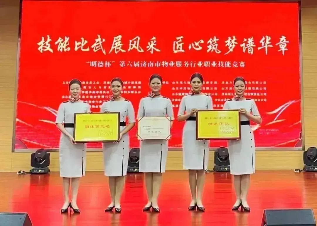 在2022年8月份舉行的“明德杯”第六屆濟南市物業服務行業職業技能競賽中,濟南福仁城市運營服務有限公司何婷婷同志參加“物業管理員組”競賽單元,榮獲第三名好成績,被授予“技術能手”榮譽稱號。由陳瑤、宋曉菲、鄭雯瀟、李沁棪等客服人員組成的代表隊被授予“示范團隊”榮譽稱號。承載城市夢想,服務美好生活,福仁以專業化人才隊伍,以品質化、精細化的物業服務管理,助力城市美好向新。
