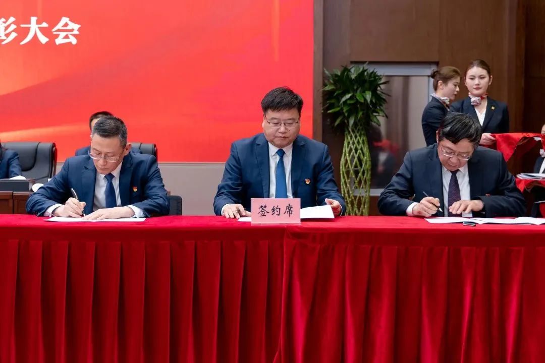 會上集團黨委書記、董事長史海成,黨委副書記、總經理許為民,與部室、子公司主要負責人代表,簽訂2023年度《目標責任書》和《全面從嚴治黨及黨風廉政建設責任書》;集團副總經理安玉坤同志宣讀表彰決定,并對獲獎集體和個人代表進行了現場表彰。