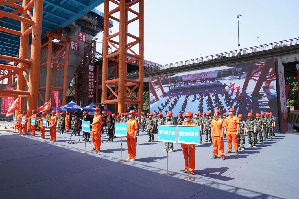 為全面貫徹落實(shí)黨的二十大精神和習(xí)近平總書(shū)記關(guān)于安全生產(chǎn)的重要指示要求,認(rèn)真落實(shí)省、市安全生產(chǎn)工作視頻會(huì)議精神,進(jìn)一步完善防汛應(yīng)急預(yù)案,提高防汛搶險(xiǎn)應(yīng)急處置能力,5月12日,建設(shè)集團(tuán)在濟(jì)南黃河公路大橋擴(kuò)建工程現(xiàn)場(chǎng)開(kāi)展“凝心聚力謀發(fā)展 統(tǒng)籌兼顧保安全” 2023年度防汛應(yīng)急演練。山東省應(yīng)急廳防汛抗旱處副處長(zhǎng)王震,市應(yīng)急局防汛抗旱處副處長(zhǎng)楊志斌,市國(guó)資委信訪處副處長(zhǎng)、二級(jí)調(diào)研員周琳琳,濟(jì)南黃河河務(wù)局水政處處長(zhǎng)尹訓(xùn)海,天橋黃河河務(wù)局防辦主任張遠(yuǎn)博,建設(shè)集團(tuán)總經(jīng)理助理、安全總監(jiān)解漢忠出席活動(dòng),集團(tuán)各部室及子公司主要負(fù)責(zé)人參加活動(dòng)。