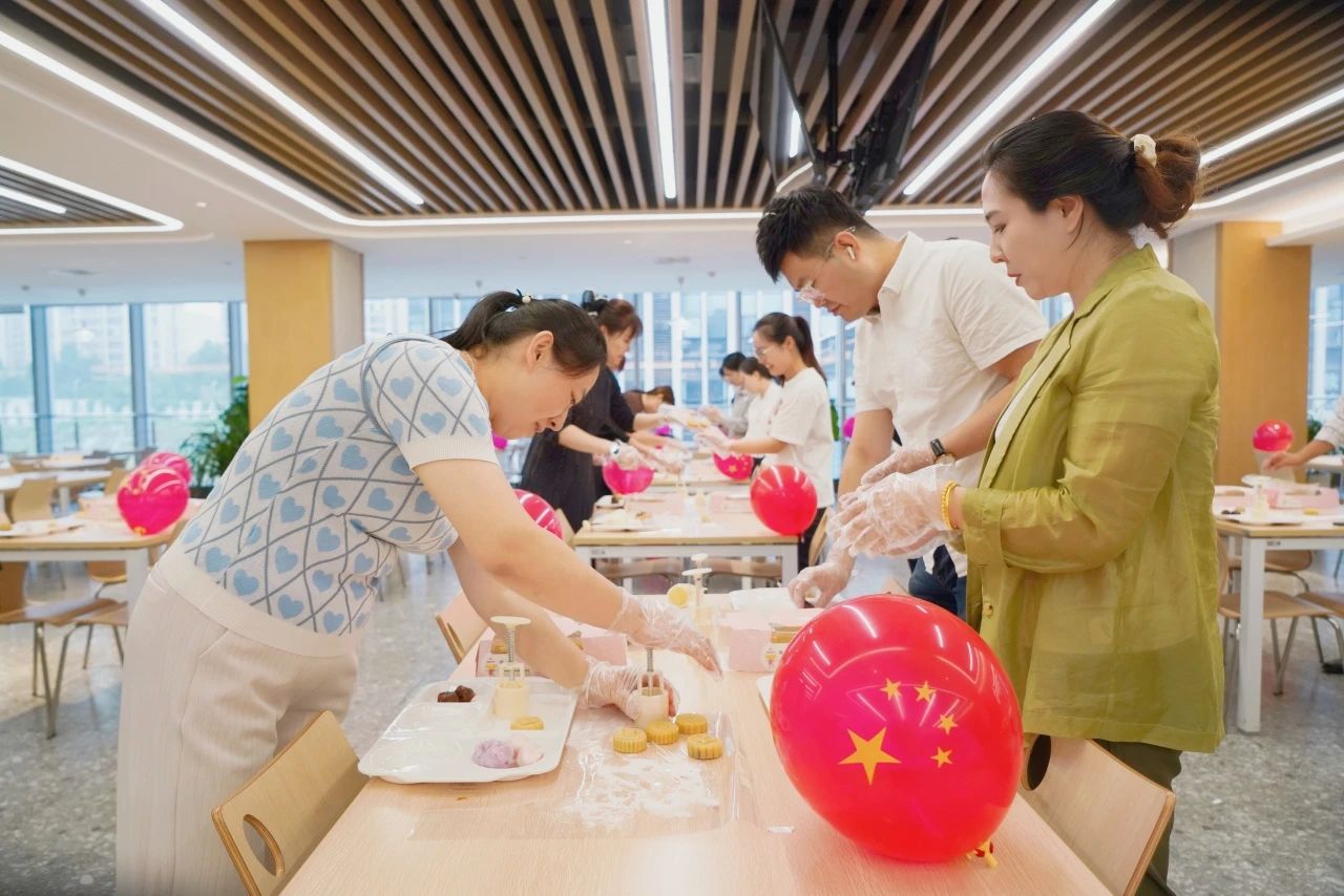 活動現場,糕點師傅悉心指導,員工們踴躍參與,并交流分享月餅的制作方法和文化內涵,在動手制作中感受傳統文化魅力和濃厚的節日氛圍。
