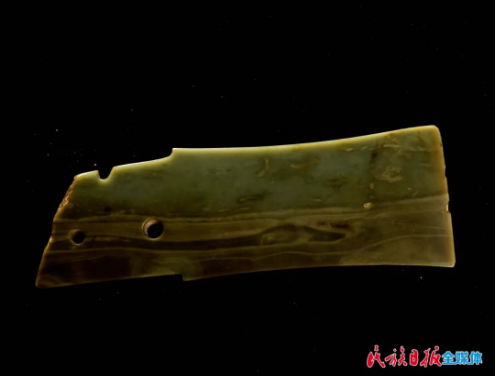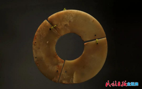 三聯(lián)璧是該館的重要藏品之一,這件器物屬于透閃石玉,整體呈扇面狀,由三件玉片連接而成,每一片都兩側(cè)對(duì)稱,兩端鉆孔,孔一面大一面小,呈喇叭狀,采用單面鉆孔法。此套三聯(lián)璧雖加工簡(jiǎn)單,但琢工端莊大氣、拙樸豪放,它在最初以配飾形式出現(xiàn),到了齊家文化時(shí)期作為祭祀用的禮器,成為權(quán)勢(shì)與地位的象征。
