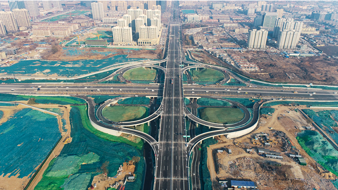 泰安市迎勝路南延改造工程是泰安市2020年十大實事之一,作為泰安市的首條城市快速路,路線全長約5.7千米,采用高架橋與地面工程相結合的建設方案。全線設主線高架橋(約3千米)橫跨泮河、泮河大街、萬官大街、岱陽大街,北起靈山大街,南至泰安南收費站。這一貫通泰安南北的黃金通道,極大盤活了泰安中心城區與青蘭高速交通網,有效滿足居民交通需求,為泰安區域經濟發展再添交通大動脈。