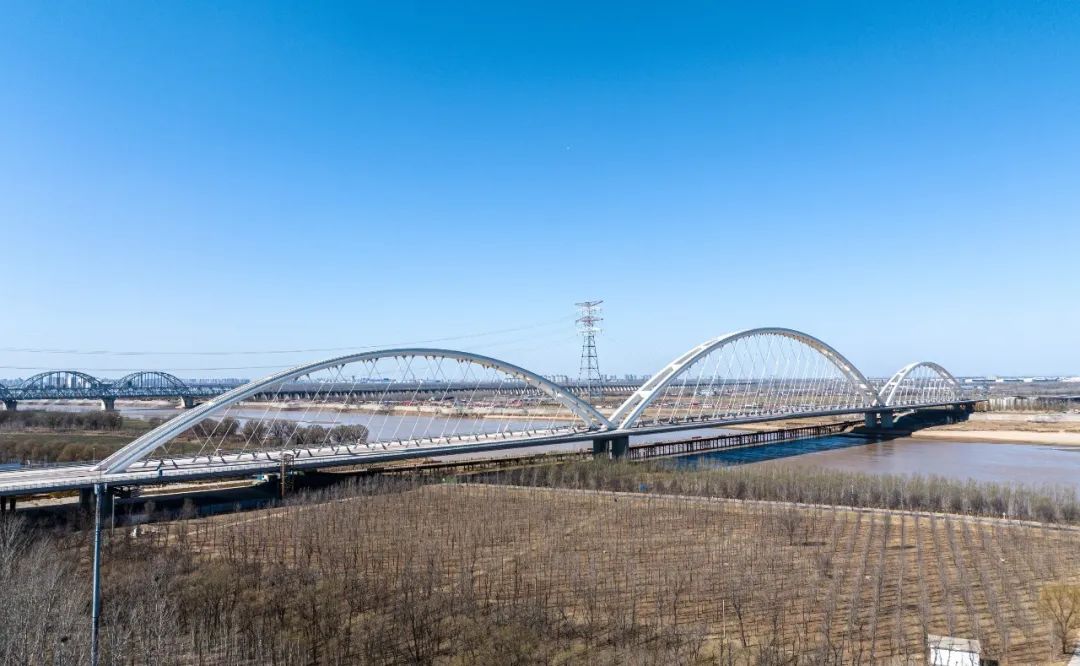 濟南黃河齊魯大橋位于濟南市槐蔭區(qū)、天橋區(qū),路線南起齊魯大道與濟齊路交叉口,接現(xiàn)狀齊魯大道,依次跨越美里路、北太平河北路、濟廣高速,經(jīng)過鄭家店村東,跨越黃河后,終點位于G309交叉處。項目全長6742米,按照雙向八車道一級公路標準建設(shè),兼顧城市主干路功能,設(shè)計速度60公里/小時,主橋范圍為公軌合建的橋梁形式,中間預(yù)留城市軌道交通空間。主橋采用網(wǎng)狀吊桿系桿拱橋,主跨420米,工程建成后將成為同類橋型跨徑世界第一。