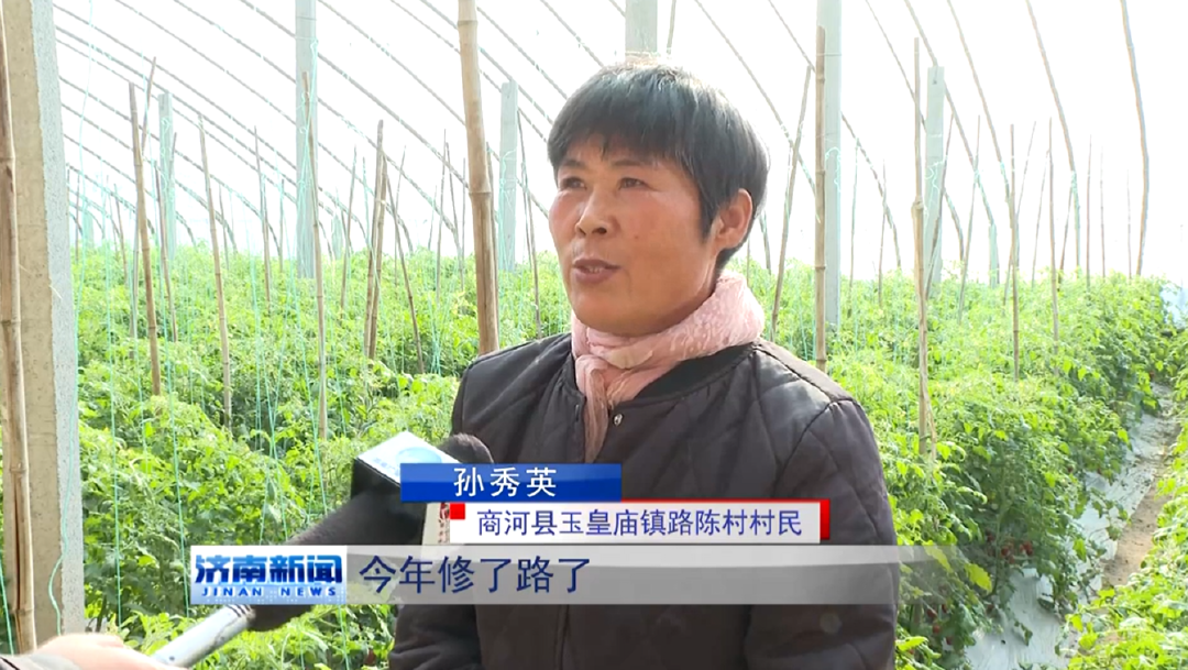 在商河縣玉皇廟鎮路陳村村民孫秀英家的蔬菜大棚里,夫妻二人正忙著收獲小西紅柿。今年,小西紅柿迎來大豐收,一畝地能收兩萬多斤。而更令他們欣喜的是大棚旁邊的道路,今年有了大變樣。