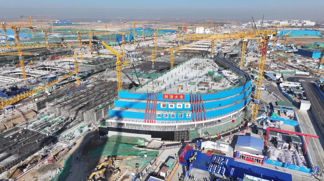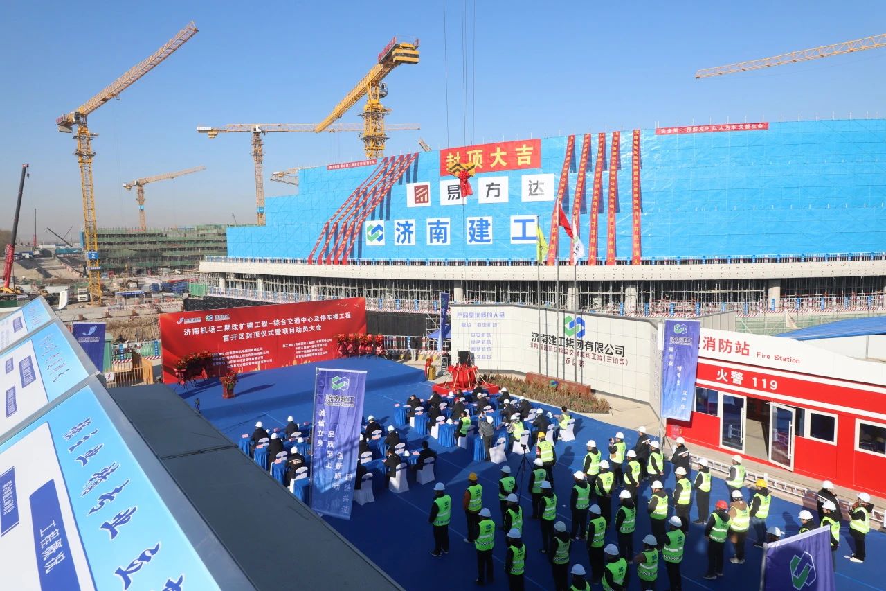 濟南機場二期改擴建綜合交通樞紐工程首開區封頂