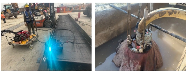 航天大道穿黃隧道工程(I期)包括隧道東岸始發(fā)井及明挖段圍護(hù)結(jié)構(gòu)采用地連墻+內(nèi)支撐形式,共計地連墻87幅,使用工字鋼3578米。項(xiàng)目部精心策劃,通過方案比選,確定使用焊接機(jī)器人進(jìn)行施工,較傳統(tǒng)人工焊接工效提升3倍,費(fèi)用降低93%。