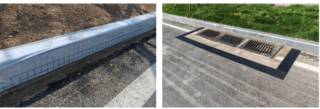 在鵲華西路瀝青攤鋪過程中,應(yīng)用“瀝青防裂貼”,在瀝青施工縫處采用與設(shè)計同厚度的木條模板,保證面層厚度、壓實(shí)度,省去切縫工序,保證瀝青搭接平順;在路緣石施工中使用“路緣石防油貼”減少瀝青污染,保持道路整體的美觀和使用壽命,減少維修成本。