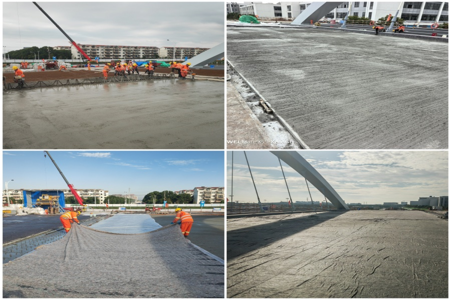 蘇州長陽街北延項目新建一座外傾式鋼結構系桿拱橋,其橋面鋪裝施工采用USFRC低收縮高強韌性抗滲混凝土。USFRC低收縮高強韌性抗滲混凝土用于施工有諸多優勢,其低收縮性可提升混凝土的耐久性和使用壽命,高強度能增強結構的安全性與穩定性,高韌性讓混凝土在遭受沖擊或振動時不易破裂,抗滲性能表明它可抵抗不小于0.8MPa的水壓力且不出現滲透問題。項目部將繼續深入貫徹公司“效益提升年”的工作安排,積極探索和創新施工工藝,扎實保障施工質量,持續提升項目部施工質量與創新水平。