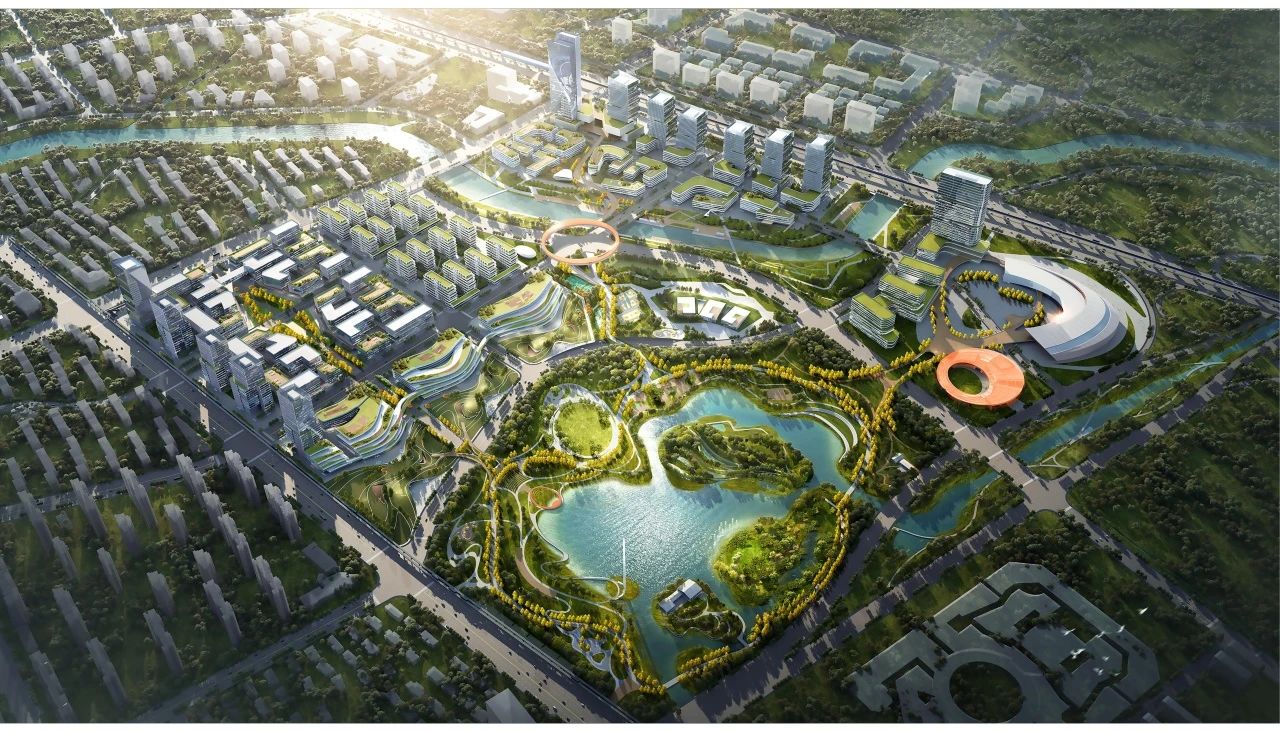 本區域配套設施完善,統籌共享城市級醫療、文體及商業設施。以科創城為中心,兩公里范圍內規劃建設有1500床位的綜合醫院、600床位的頤養中心、占地40公頃的彩虹湖城市公園以及建筑面積10萬平方米的奧特萊斯商業綜合體等。科創城內部結合景觀水系,規劃建設共享服務帶,集中設置眾創平臺、文體活動中心、餐飲商業、社區醫院等,并同步規劃建設可容納2000人的會議中心和1000客房的國際酒店。